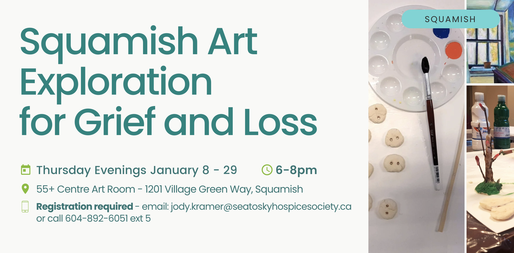 | 0 events, | 1 event, ![]() Caregiver Support group 2026-1 Are you caring for someone close to you with a life-limiting illness and/or cognitive/physical decline? Feeling isolated? Please join our experienced volunteer facilitators and a small, dedicated peer support group of caregivers for this free, drop-in monthly session to share your journey with others who understand. Lunch is served, by Mag's […] | 0 events, | 3 events, ![]() Every Thursday morning, we meet at 10am in front of the Squamish Adventure Centre for a 45-minute gentle forest walk, followed by a casual coffee shop chat at Cafe Garibaldi. Whether your loss is recent or several anniversaries have passed, our Hospice Volunteers will welcome you to this peer-support group. Volunteer leaders carry Hospice-branded backpacks. This drop-in group is a place to explore your own grief and hear shared experiences of others in their journey through loss, while finding support and a sense of community. Whistler Public Library, Jan 15-Feb 19 (6 weeks), 5:30-6:30pm No registration required, just show up. Questions about the program? shalissa@mywcss.org Need further information about grief […] ![]() Join volunteer Art Exploration facilitators Grace and Jani once a week on Thursday evenings in January for this four-week program, as they help to "draw out" the expression of grief and loss through the use of mixed art materials. Participants will benefit from facilitated peer support and the opportunity to express grief without words, in […] | 0 events, | 0 events, | 0 events, |